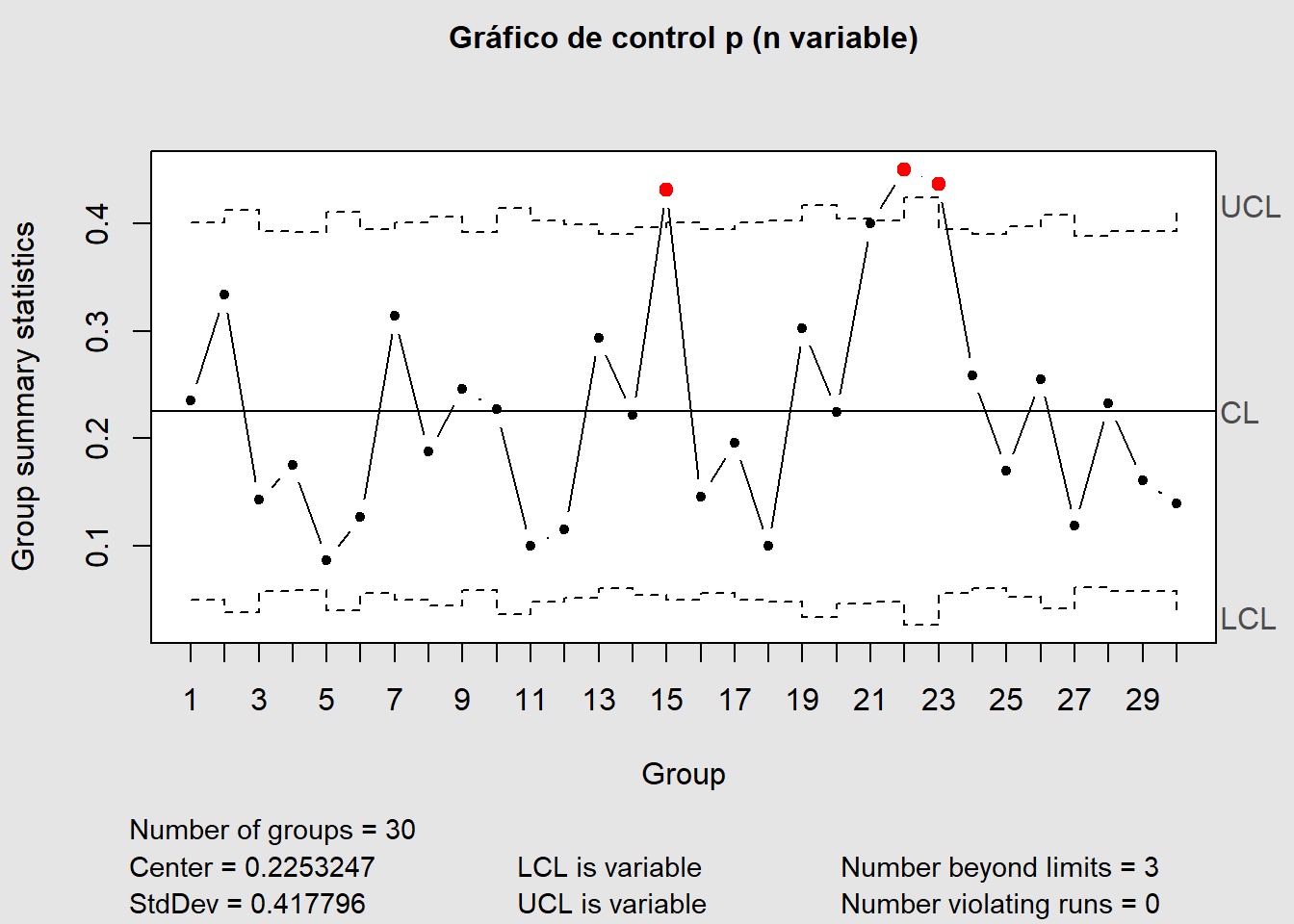 title = "Gráfico de control p (n variable)")