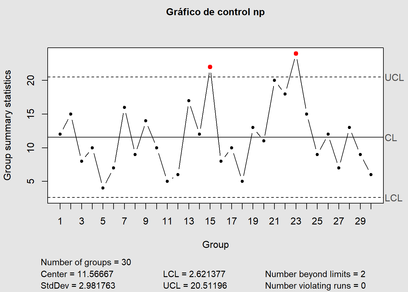 title = "Gráfico de control np")
